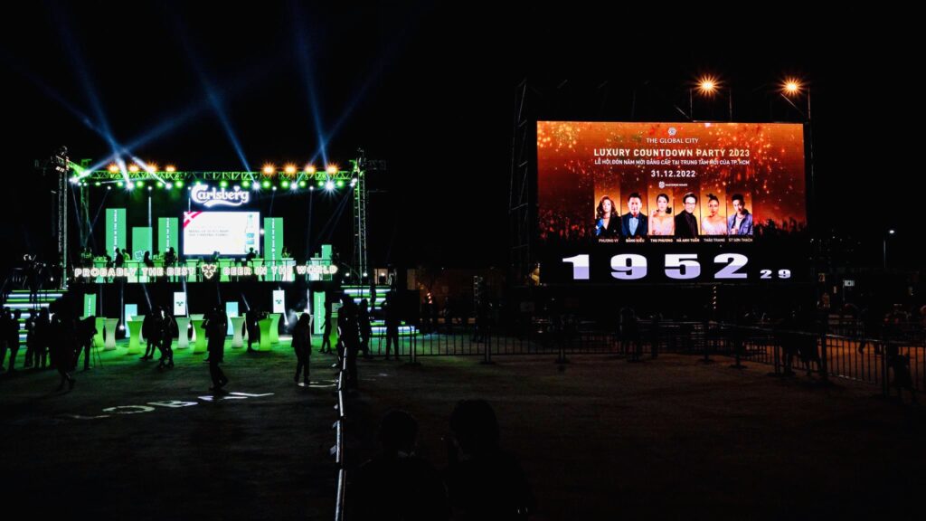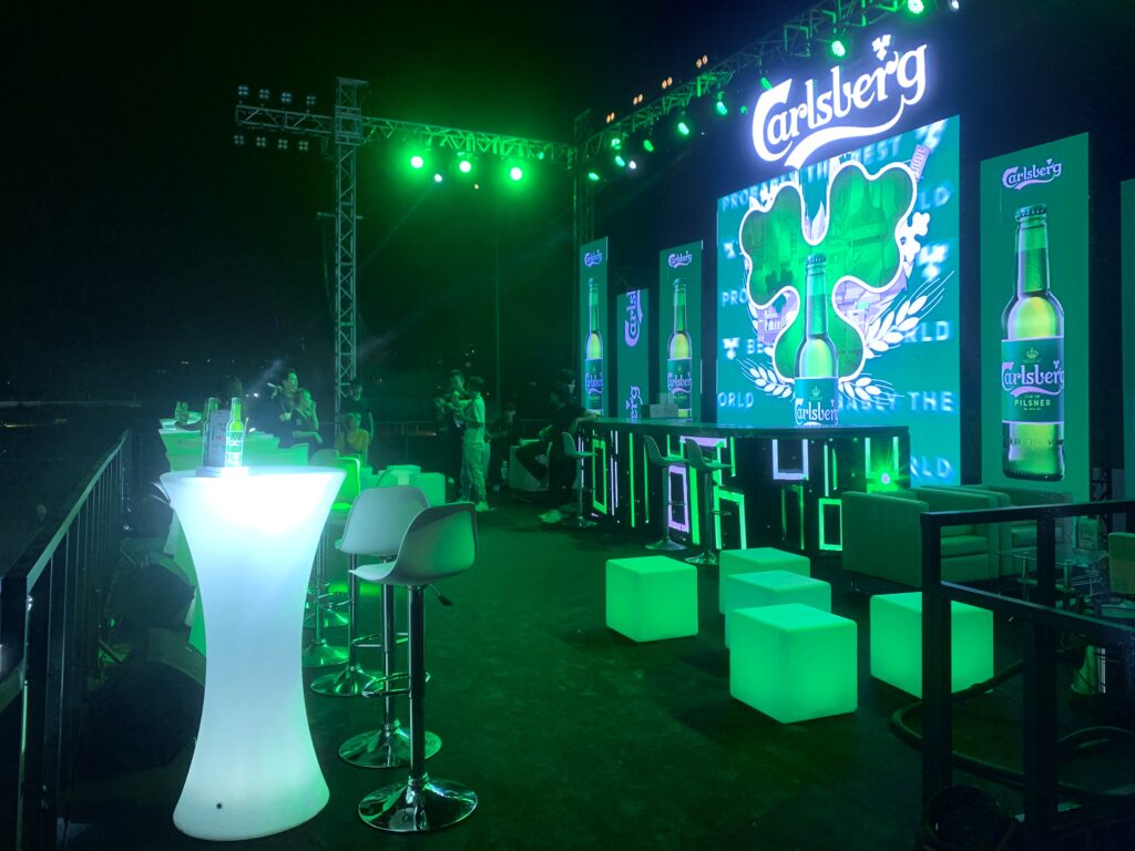 Carpe Diem vinh dự được cung cấp các hạng mục bàn ghế tại khu vực V.I.P theo màu sắc nhãn hàng Carlsberg – Luxury Countdown Party 2023 tại The Global City: – Bàn Bar Led – Ghế Bar